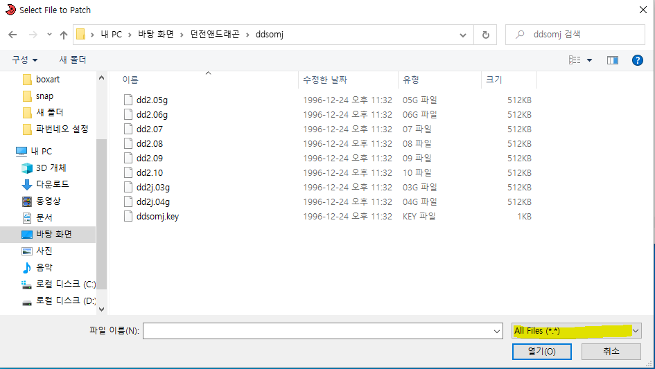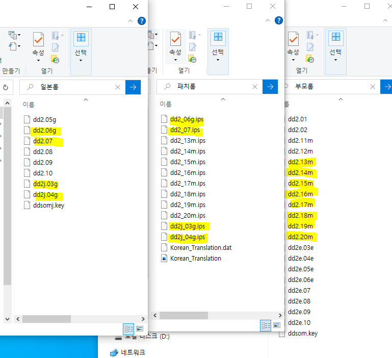 패치롬의 g가 붙은 4개는 일본롬(ddsomj)에 패치합니다. m이붙은 8개는 부모롬(ddsom)에 패치합니다.